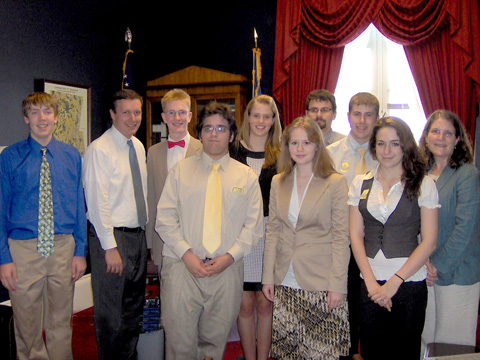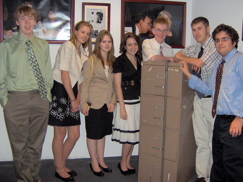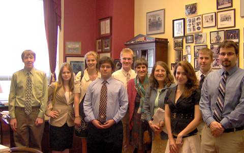During their June 2008 visit to Washington, D.C., seven area high school students, from Middlebury, Seymour, Southbury, and Woodbury, met with Congressman Christopher Murphy (D-5th). Congressman Murphy spoke about his day-to-day activities, expressed enthusiasm for representing the residents of the 5th Congressional District, and responded to the students’ questions. In addition to meeting with Congressman Murphy, the students attended a press conference about the Consumer Oil Price Protection Act, attended Congressman Murphy’s House speech about oil drilling, met with other members of the Connecticut Congressional delegation (John Larson, Rosa DeLauro, and Christopher Dodd) and toured the Capitol. Other activities during the trip included: attending a Senate Committee hearing and a State Department briefing, sightseeing at national monuments, and a visit to the Newseum.